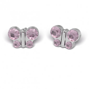 Sensitive Tube Kids - Vlinder, Lichtpaars Kristal, Chirurgisch staal, 7 mm (oorbellen voor achteraf)
